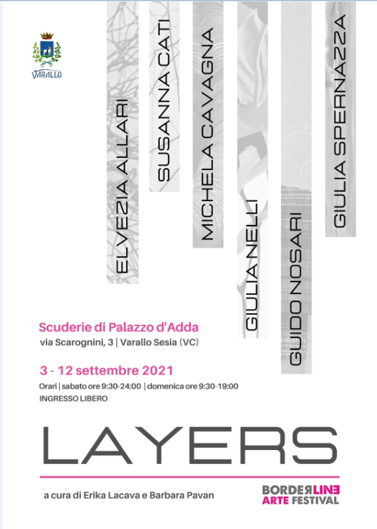 Nell’ambito del Borderline Arte Festival di Varallo Sesia, dal 3 al 12 settembre sarà visitabile nelle Scuderie di Palazzo d’Adda, via Scarognini 3, LAYERS, un progetto d’arte contemporanea curato da Erika Lacava e Barbara Pavan.